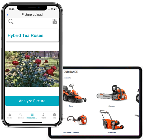 With the Digital Gardener App, a gardener can take and upload a snapshot of a plant. While uploading, the picture is analysed and recognized by the integrated AI/ML service. This information is sent to a product database, which then suggests the best tools and care products.